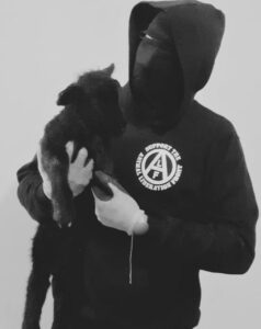 Hace dos semanas, visitamos una de las granjas de visones en un lugar que no mencionamos aquí por razones de seguridad. Después de caminar penosamente durante horas por el bosque y entre zarzas, ya que la granja se encontraba en un lugar muy remoto, vimos los cobertizos que llevábamos tanto tiempo buscando y oímos ladrar a los perros en algún lugar lejano. Esta propiedad estaba tan bien escondida de la vista humana que ni siquiera se molestaron en instalar una valla, salvo un alambre de púas a la altura de la cintura.